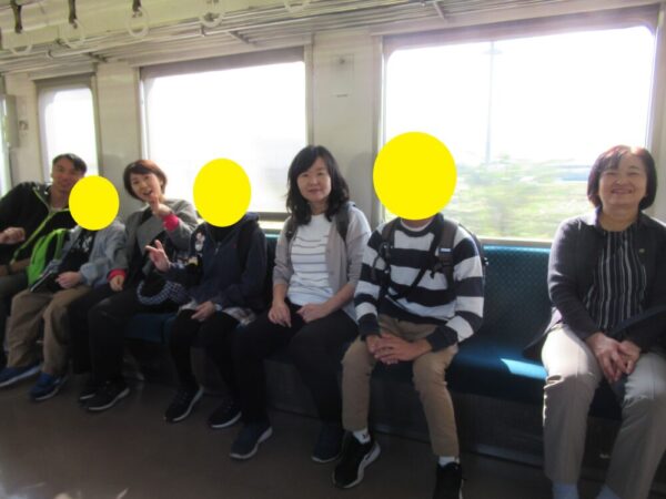 10月24日(金)に小学部と中学部合同で秋の校外学習に行ってきました。はじめに甲府駅に集合し電車に乗って、石和温泉駅へ向かいました。電車の中では、友達や先生と楽しく会話をして過ごすことができました。
