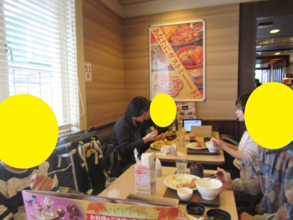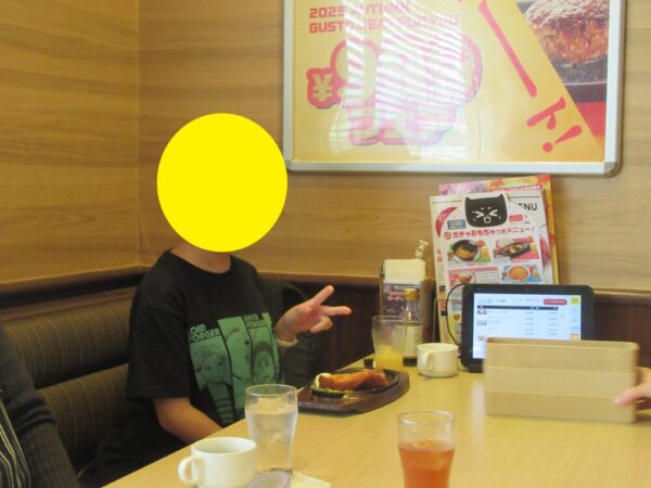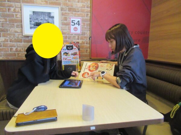 昼食は、みんなでガストに行きました。歩いての移動だったため、到着するころには児童生徒たちはすっかりおなかがぺこぺこ。注文した料理が運ばれると、笑顔いっぱいでおいしそうに食べていました。友達や先生と一緒においしい昼食を囲みながら過ごす時間は、とても楽しく、思い出に残るひとときとなりました。