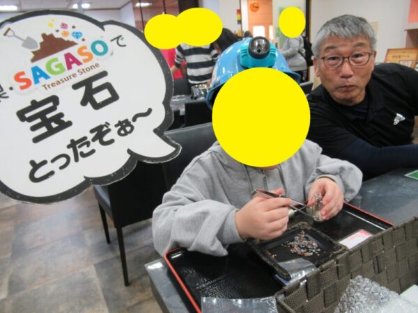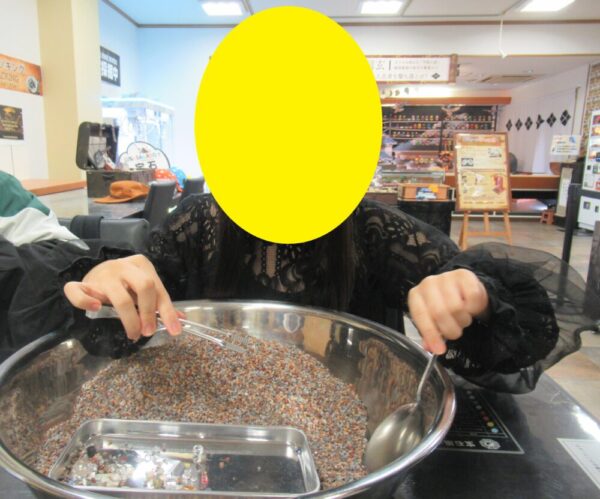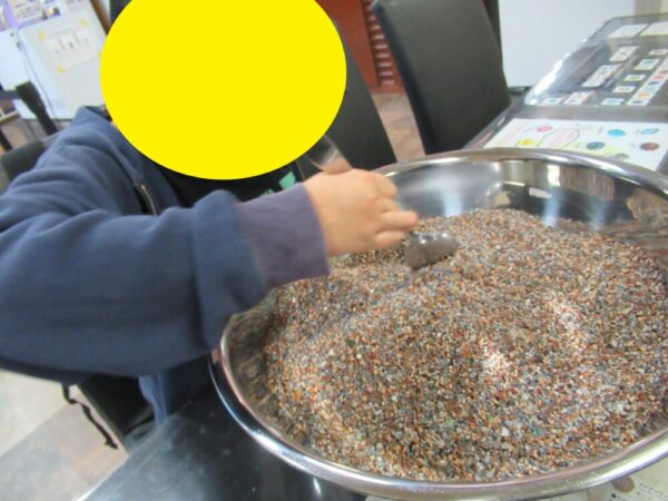 昼食後、甲斐の駅いさわへ行きました。宝石発見体験では子どもも教師も集中して様々な石を見つけることができました。上級生が下級生に声をかけ、作業を手伝ったり、チケット購入をサポートしたり、上級生らしさも見られました。また、隕石を持ち上げる体験やパワーストーンアルコールスプレー作成も楽しく参加することができました。