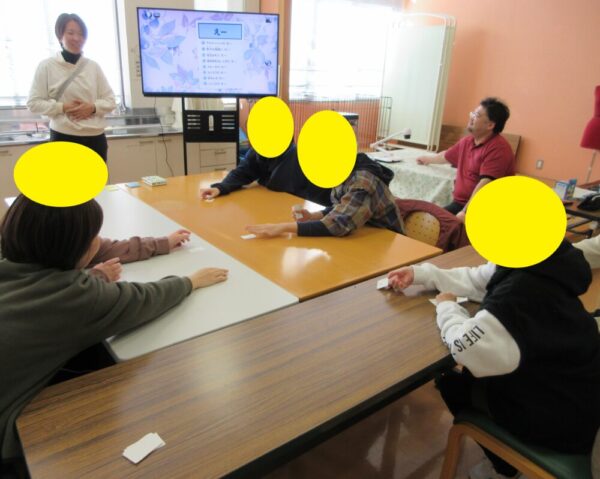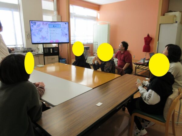 続いて、小学部・中学部の親睦を深めるために「はぁっていうゲーム」を行いました。教員がさまざまなお題を言葉で表現し、その内容をどんなときに使う言葉か①~⑦の中から児童生徒が当てるというゲームで、教員の演技力と児童生徒の観察力が試されました。正解した際には、嬉しそうにガッツポーズをする児童生徒の姿も見られました。また、クローバー祭実行委員長もお題の表現に挑戦し、友だちから大きな拍手が送られるなど、温かい雰囲気の中で親睦がさらに深まりました。